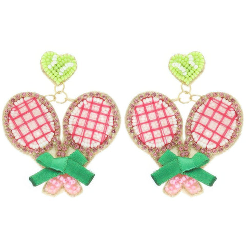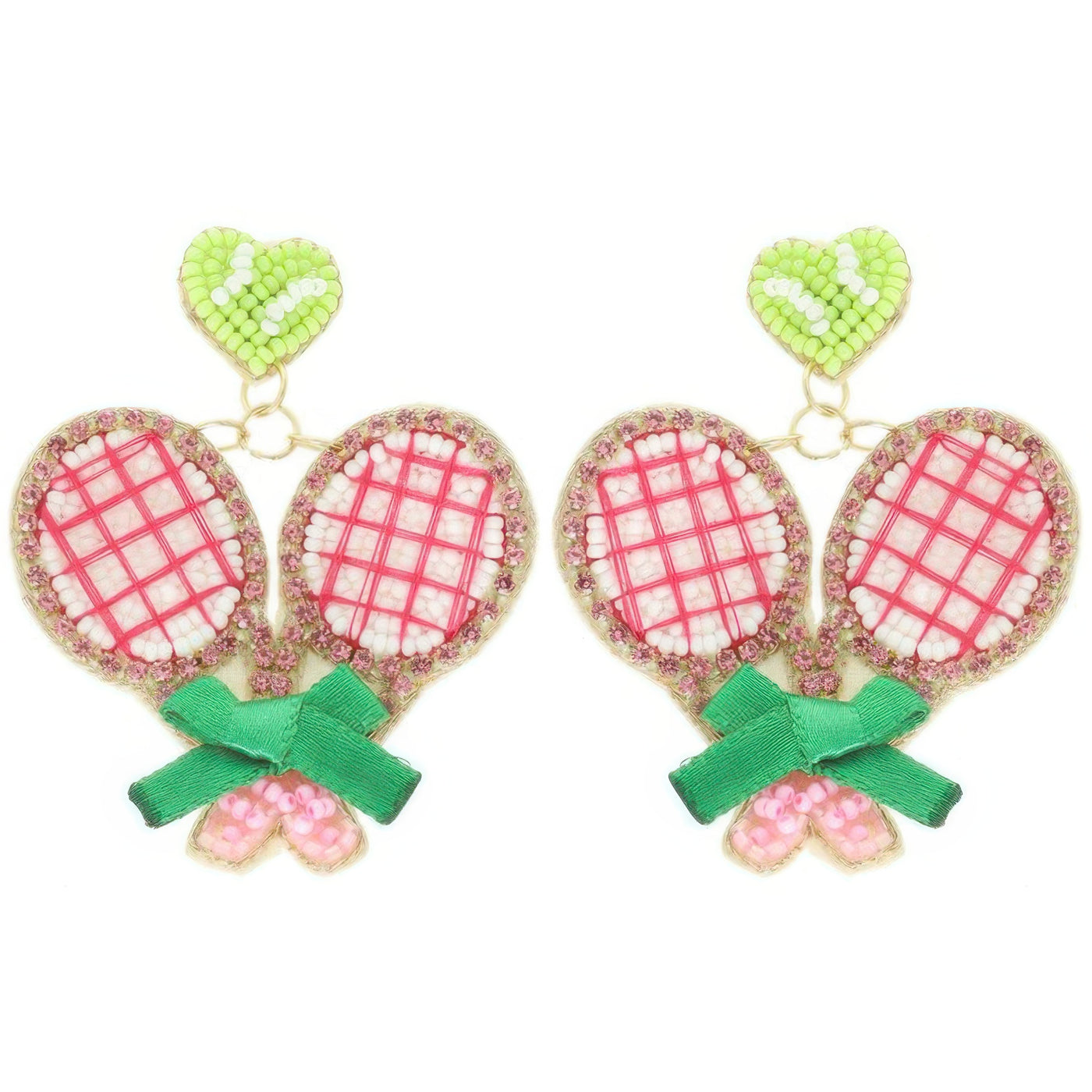 Product Description: Add a playful twist to your game day look with the Tennis Set Theme Post Dangle Earrings. Embellished with sparkling crystal beads, this sporty pair showcases a charming tennis motif that’s both fun and fashionable. Lightweight and eye-catching, these earrings are perfect for tennis matches, social gatherings, or casual outings with a hint of flair. Designed for sports fans with style, they bring a spirited touch to your accessory game. Whether you're on the court or in the stands, these earrings serve up fashion and fun.
