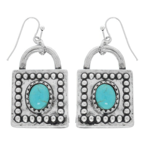 Western Turquoise Square Locket Earrings - Turquoise.Sbtq