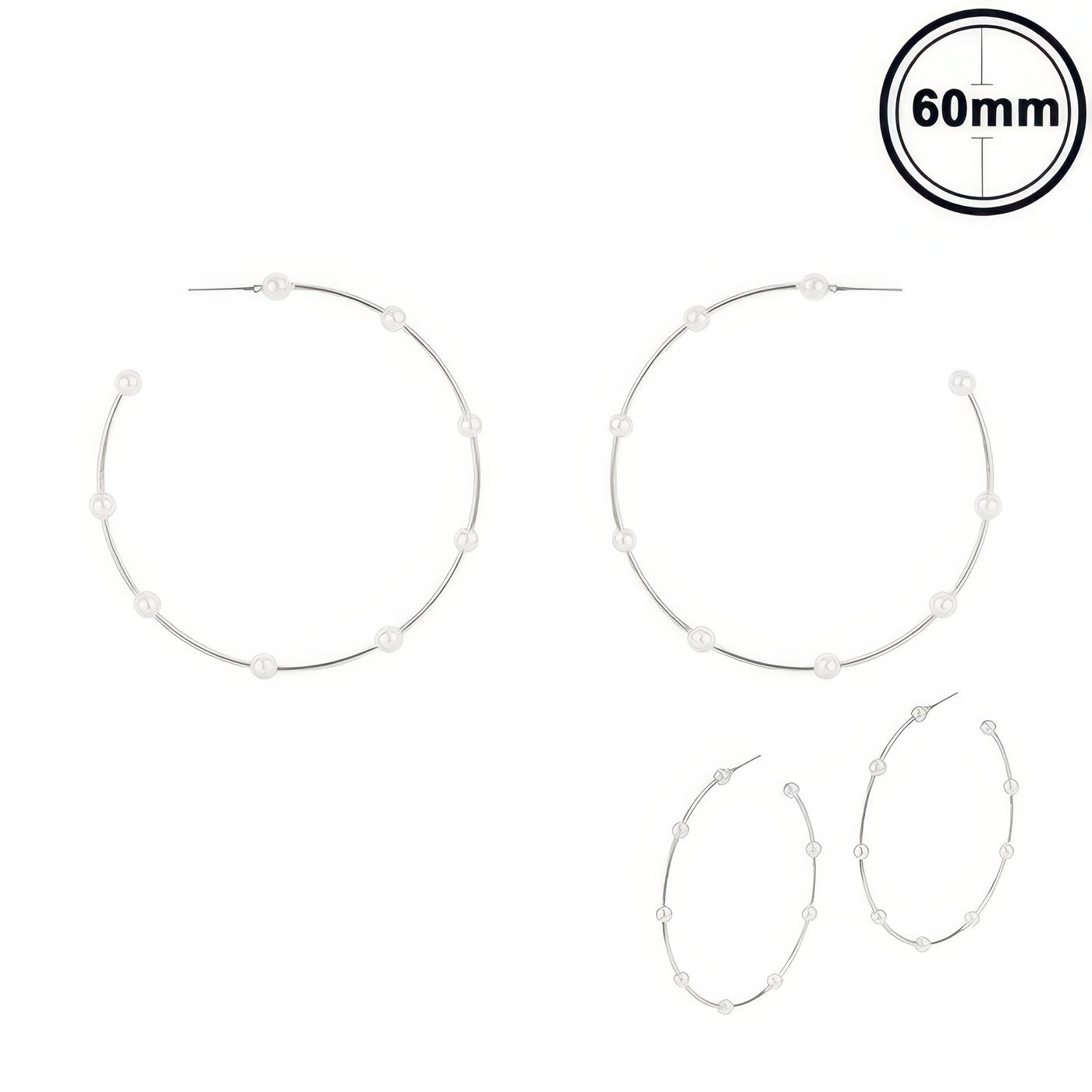 Product Description: Refined and romantic, these oversized white pearl hoop earrings offer a polished twist on a classic silhouette. Designed in gold-tone and silver-tone finishes, they bring elegance and grace to any outfit. The 60mm wire design is lightweight yet eye-catching, ideal for events, brunches, or evening looks. Their clean lines and smooth finish deliver a timeless, sophisticated feel. A must-have pair for those seeking a chic, elevated accessory.