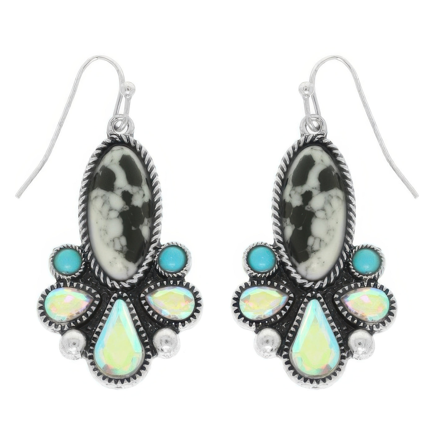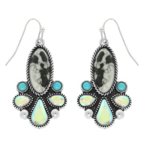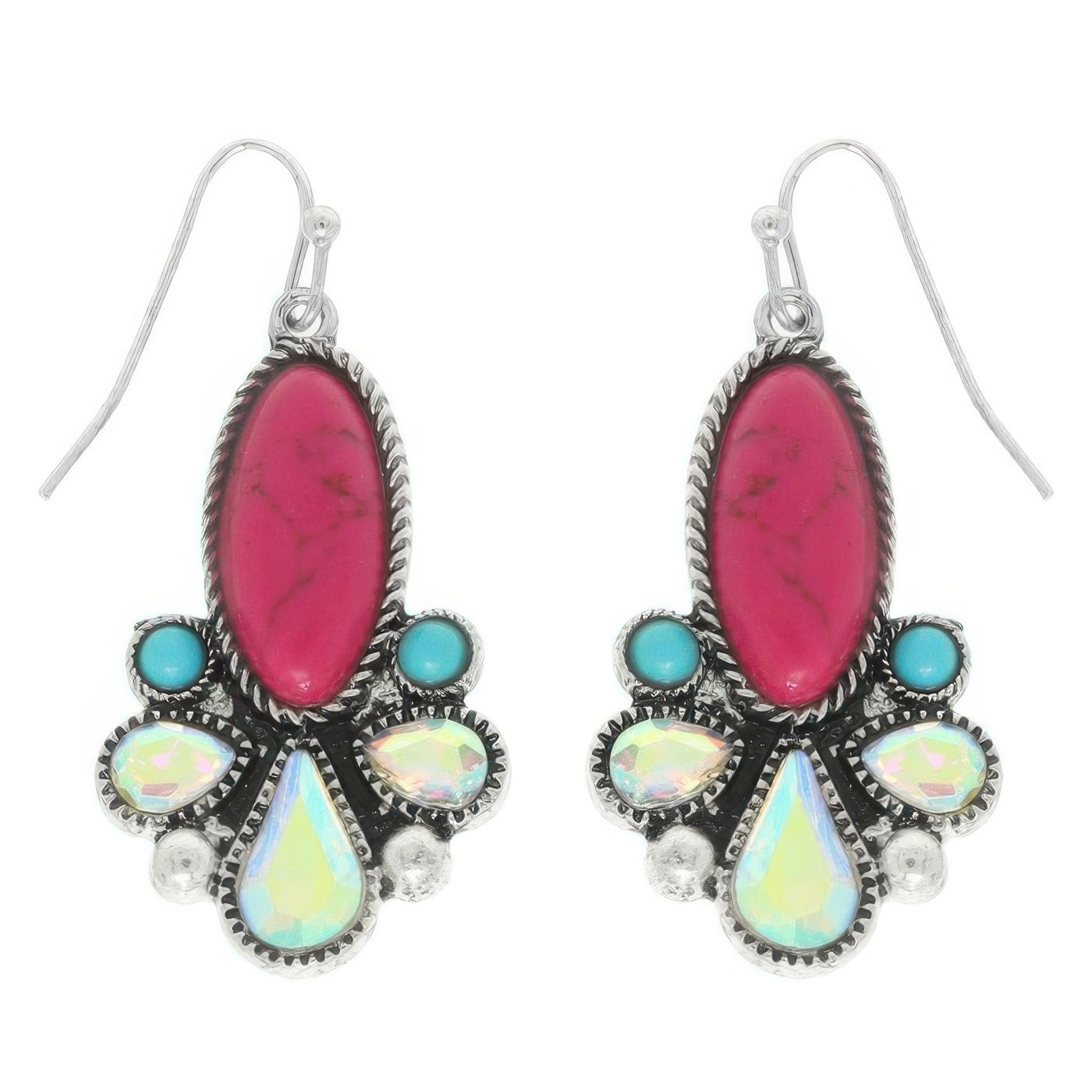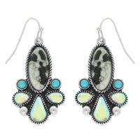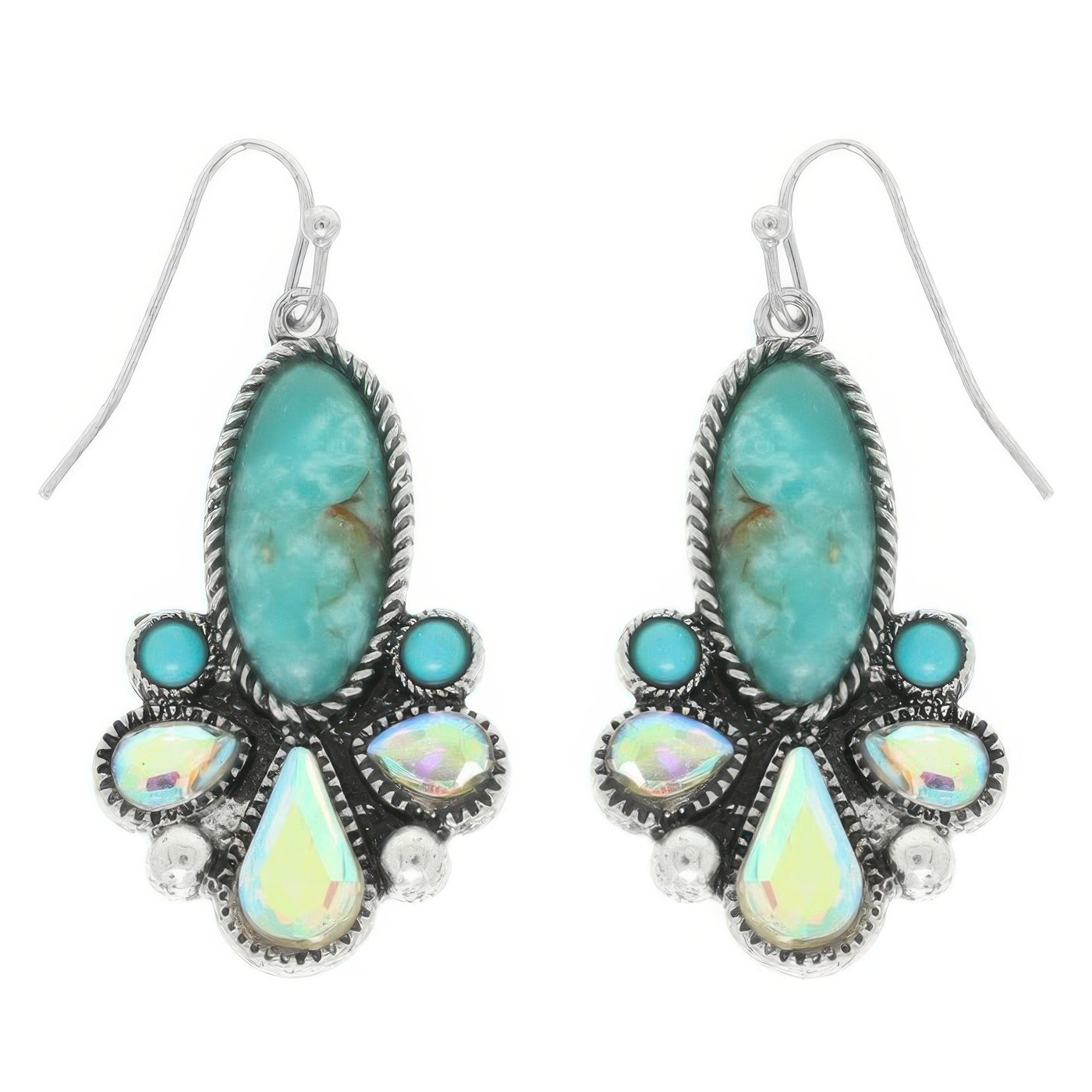 Product Description: Add a touch of vintage Western charm with these Colored Floral Turquoise Oval Earrings. Featuring a squash blossom-inspired silhouette adorned with crystal accents, these earrings deliver timeless elegance with a modern twist. The vibrant floral design evokes passion and creativity, while the lightweight feel ensures all-day comfort. Perfect for everything from photo ops to casual brunches, this pair makes a versatile statement piece for the style-savvy cowgirl.