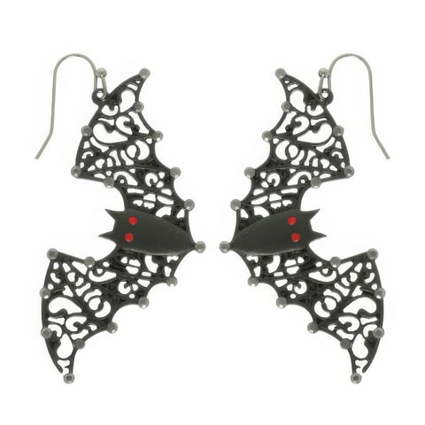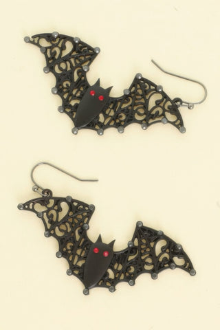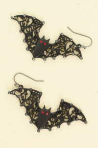 Halloween Black Epoxy Bat Earrings - Black.Htbk