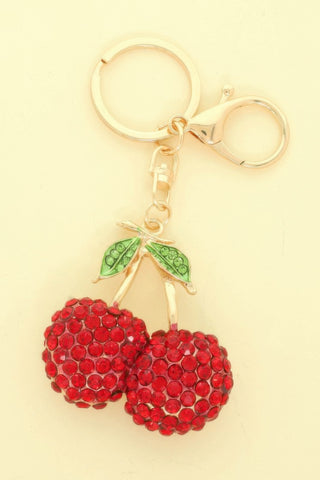 Product Description: Add playful sparkle to your bag or keys with this jeweled red cherry keychain. Embellished with red and green rhinestone pave, it brings a burst of color and whimsy to everyday accessories. The split ring and lobster clasp make it easy to attach to bags, backpacks, or purses. Lightweight yet vibrant, it’s a fun pick for fruit lovers, gift givers, or trend-conscious teens. Whether you're accessorizing for school, travel, or gifting, this charm adds a pop of personality.