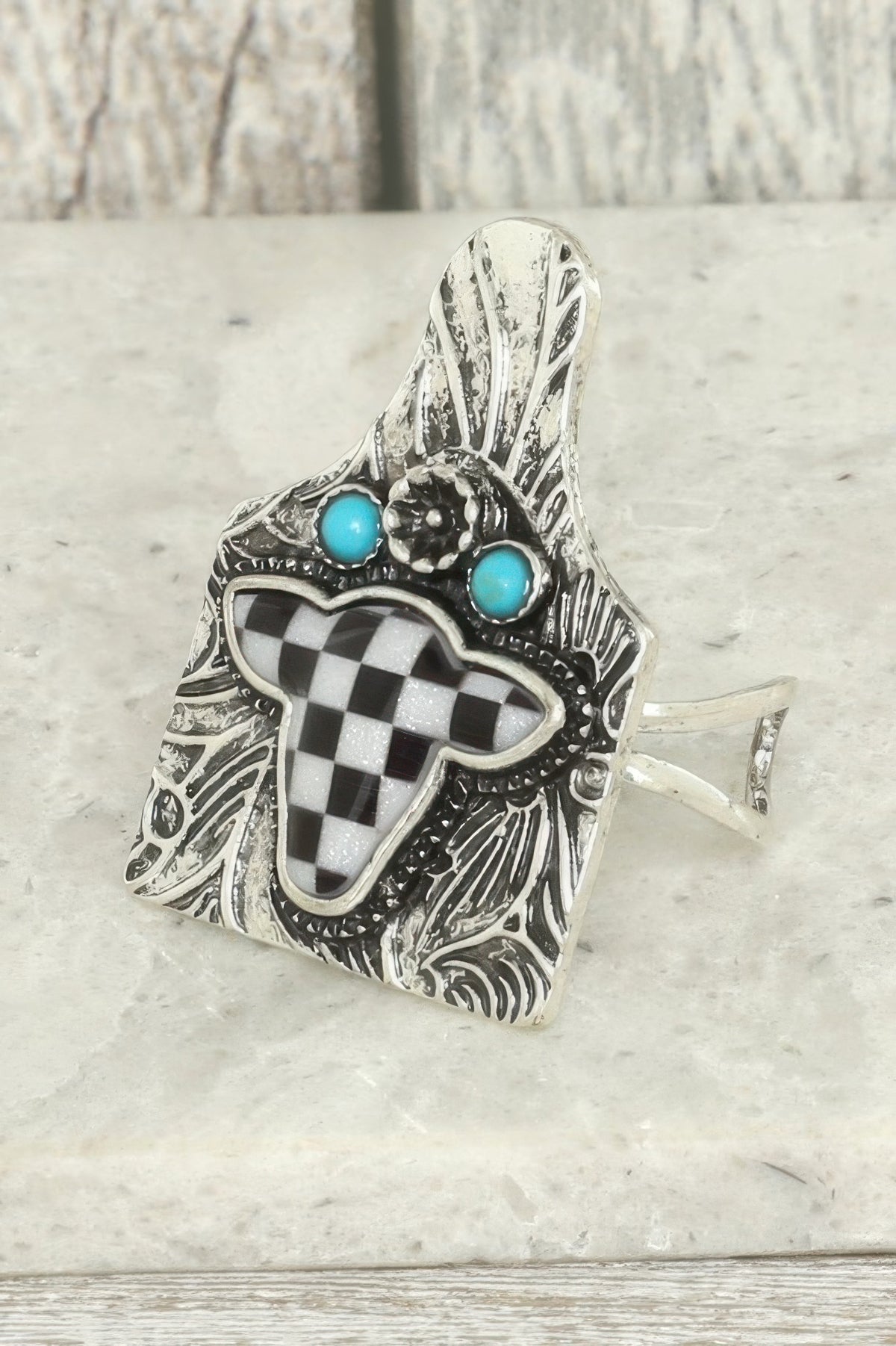 Western Floral Jeweled Cuff Ring - AquaBlue.Asab