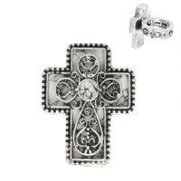 Product Description: Infuse your look with southwestern spirit with the Western Turquoise Cross Stretch Ring. This bold accessory features a scrolled filigree cross design centered with turquoise detailing, all set in oxidized silver-tone metal. With its flexible stretch band, it offers comfort and ease while making a meaningful style statement. Ideal for ranch events, concerts, and themed gatherings.