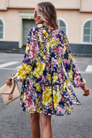 Floral Print Tiered Sleeve Ruffle Hem Smock Dress Sale