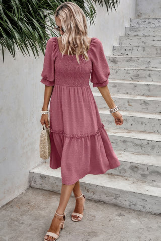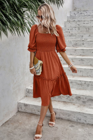 Square Neck Puff Sleeve Ruffle Hem Dress Sale