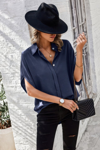 - Solid Front Open Button Loose Fit Blouse for added style and flair