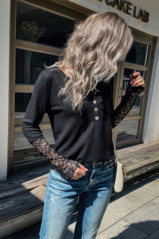 Product Description: Soft and breezy, this V-Neck Solid Button Lace Knit Loose Fit Top blends comfort with delicate detail for an effortless everyday look. The V-neckline is complemented by a button-front design and intricate lace accents, adding a touch of femininity to its casual silhouette. Made from a breathable cotton-polyester blend, this knit top drapes comfortably in a relaxed fit. Whether you're headed out for errands or enjoying a laid-back day, this piece offers stylish ease and timeless charm.